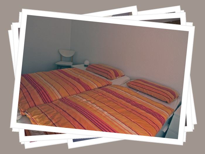 Die Wohnung verfügt über zwei seperate Schlafzimmer. Elternschlafzimmer mit Doppelbett und einem Kinderschlafzimmer mit zwei Einzelbetten.